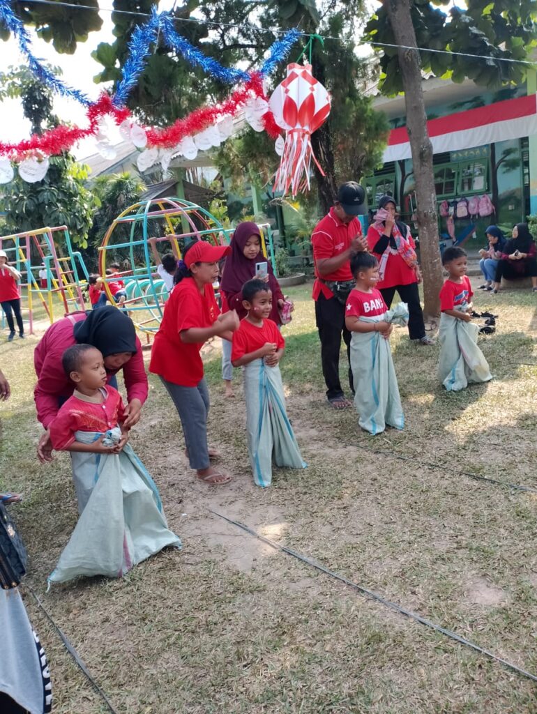 Sementara itu, untuk TK B, terdapat dua jenis lomba, yaitu lari balap karung dan jalan cepat membawa sendok dan kelereng. Lomba-lomba di TK B tidak kalah seru, dengan anak-anak yang bersemangat dan antusias, bahkan ada yang masuk ke dalam karung saat berlari, namun mereka dengan gigih bangkit dan melanjutkan perlombaan. Lomba “mama mia” juga menjadi momen seru, di mana orang tua berlari sambil menggendong anak mereka, turut terlibat dengan menggendong anak mereka untuk memasukkan besek dalam cantolan.