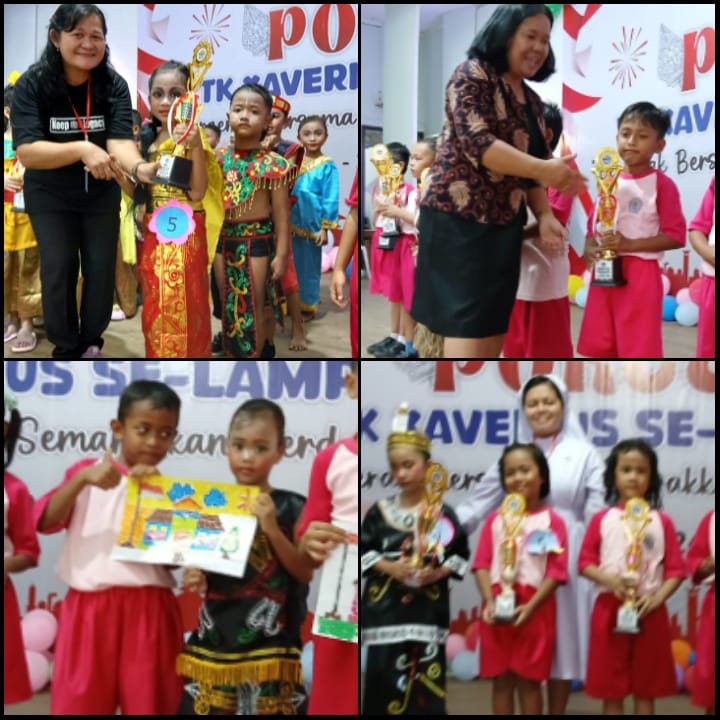 Adapun cabang olahraga dan seni yang diperlombakan serta akan diikuti oleh perwakilan tiap sekolah yaitu lomba memilih biji-bijian (Putra- Putri), lomba kolase (Putra- Putri), lomba gerak dan lagu (Putra- Putri). Pada cabang lomba memilih biji-bijian TK Xaverius Terbanggi Besar meraih Juara 3 Putri yang dimenangkan oleh Diva dan Juara Harapan 2 Putra yang dimenangkan oleh Azzam, selanjutnya pada cabang lomba kolase TK Xaverius Terbanggi Besar meraih Juara Harapan 2 yang dimenangkan oleh Zeta dan Priska, serta pada cabang lomba gerak dan lagu meraih Juara 3 yang dimenangkan oleh Yasmin, Gwen, Zeta, Laura dan Vinsen. Dengan demikian TK Xaverius Terbanggi Besar dapat membawa pulang piala disetiap cabang lombanya. “Selamat dan Sukses untuk anak-anak yang telah meraih juara dan juga untuk Bapak/Ibu guru serta Orang Tua Wali Murid yang telah berusaha dan mendukung hingga TK Xaveter dapat ikut berpartisipasi dan memperoleh berbagai kejuaraan”.