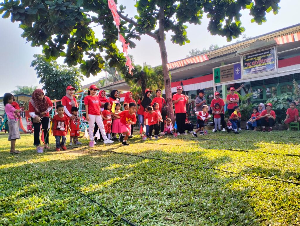 Terbanggi Besar, 15 Agustus 2024. Suasana meriah dan penuh semangat menyelimuti halaman TK Xaverius Terbanggi Besar dalam rangka memperingati Hari Ulang Tahun (HUT) ke-79 Republik Indonesia. Sejak pagi hari, murid- murid, orang tua, dan guru serta staf sekolah tampak antusias mengikuti rangkaian perlombaan yang diadakan untuk memeriahkan hari kemerdekaan.